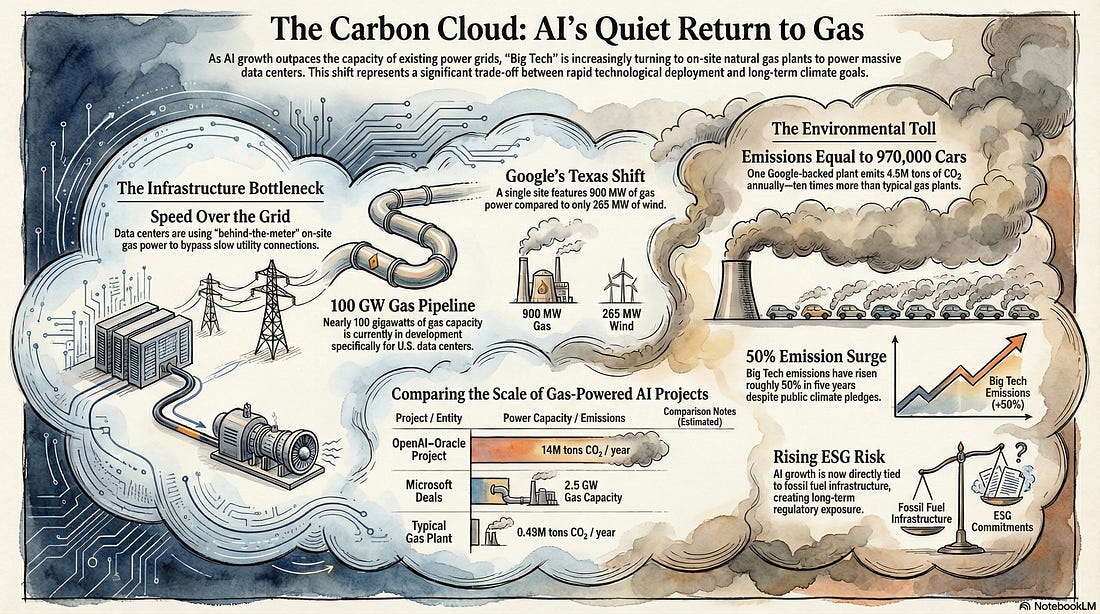 Are AI data centers driving a fossil fuel comeback?A Google-backed data center in Texas highlights a growing shift taking place where AI infrastructure is increasingly powered by natural gas. The data: