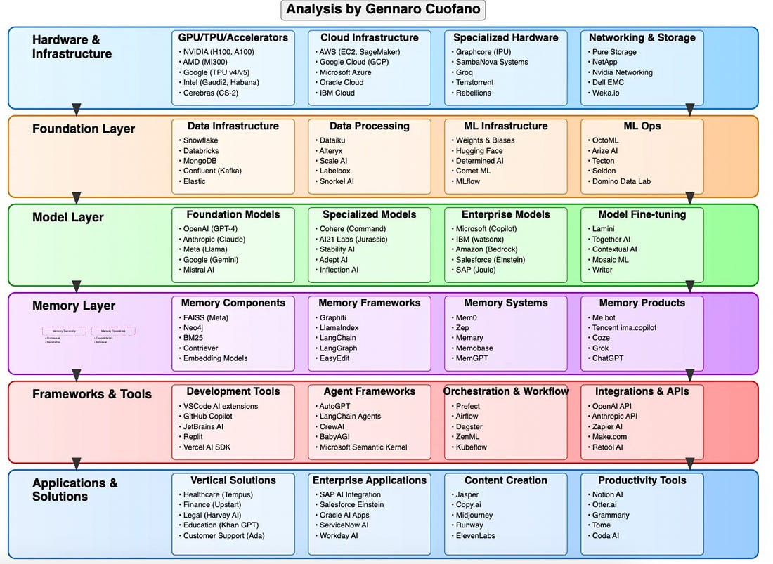 The AI Stack RevolutionI've been analyzing the complete AI ecosystem, a study released by Genaro Cuofano, and here is what we discovered. AI's Six-Layer RealityAI isn't just ChatGPT. It's a sophisticated stack with 6 layers so far: