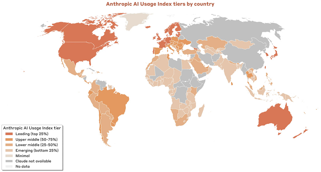 States and countries mirror their economies (policy/knowledge in DC, code in CA, tourism in HI). Benchmark your region/industry against Anthropic’s AUI to pick the highest-yield task templates.