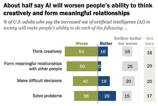 Is AI a Friend or Foe? New Study Reveals Americans Growing ConcernsA recent study by the Pew Research Center, titled "How Americans View AI and Its Impact on People and Society," reveals a significant level of public apprehension towards the increasing role of artificial intelligence in daily life. The report, released on September 17, 2025, indicates that a majority of Americans are more concerned than excited about the rise of AI and desire more control over its implementation. The Human Cost of AutomationThe study highlights particular anxiety surrounding AI's potential to diminish human abilities. A striking 53% of U.S. adults believe that the increased use of AI will worsen people's ability to think creatively, while only 16% think it will have a positive impact. Similarly, half of the respondents feel that AI will hurt our ability to form meaningful relationships. A Cautious EmbraceDespite these concerns, the report shows that Americans are not entirely opposed to AI. A majority are open to using AI for assistance with day-to-day tasks and activities. The public is particularly receptive to AI applications in areas that involve heavy data analysis, such as weather forecasting and the development of new medicines. However, there is strong opposition to AI's involvement in more personal matters, such as religion or matchmaking. The Pew Research Center's findings paint a picture of a public that is cautiously navigating the complex landscape of artificial intelligence. While the potential benefits of AI are acknowledged, they are overshadowed by deep-seated concerns about its impact on our humanity. As AI technology continues to evolve, this study underscores the critical importance of public discourse and oversight in shaping its future. 🧰 AI Guides