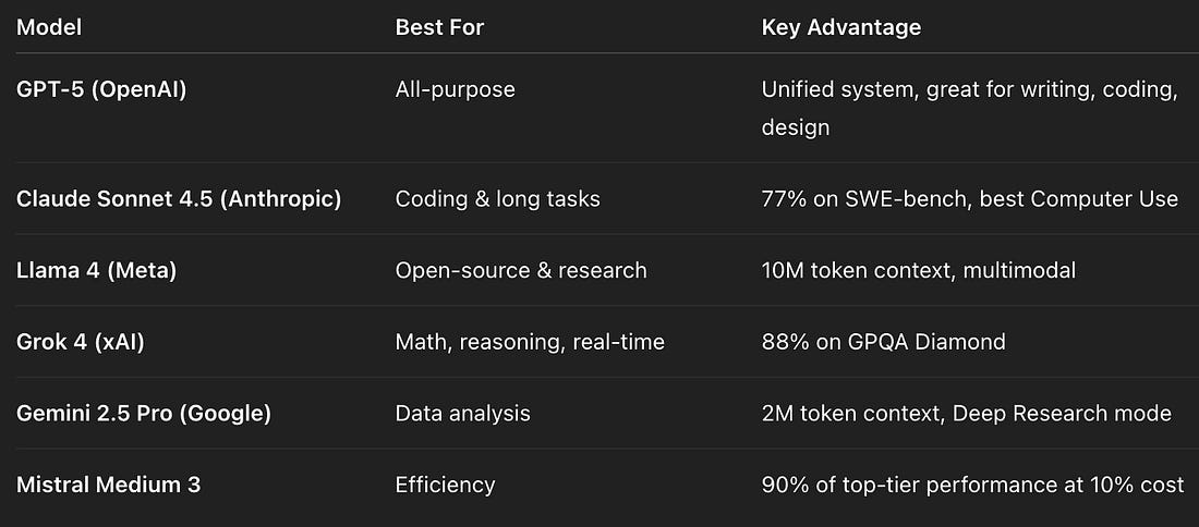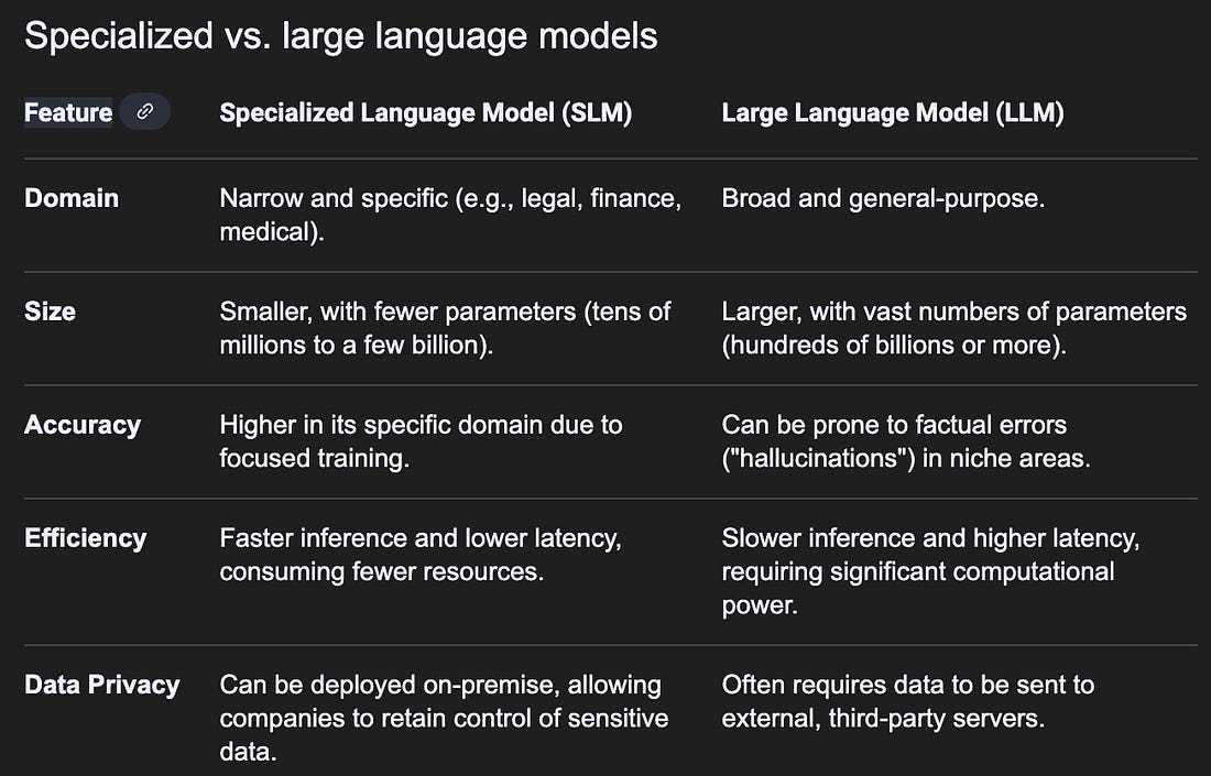 Yaro on AI and Tech Trends | Your Top AI Newsletter is a reader-supported publication. To receive new posts and support my work, consider becoming a free or paid subscriber. The Rise of Specialized IntelligenceThe AI race in late 2025 has shifted from “one model for all” to specialized intelligence. The question is no longer who’s smartest, but who’s best for the job. The big picture here is that computing power doubles every 5 years and is accelerating, with datasets arriving every 8-9 months; however, the returns are starting to flatten as models reach scaling limits. The energy cost of frontier AI is now massive, pushing demand for efficiency and smaller LLMs, specialized language models. This is leading to market fragmentation, where task-specific models in enterprise (Law, Finance, Healthcare) are preferred. Key Innovations in 2025